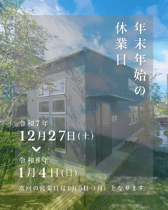 【年末年始休業】12/27(土)~1/4(日)